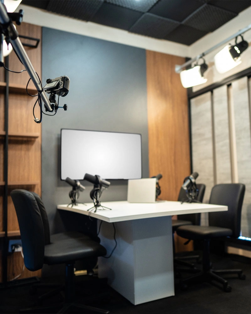 Create your perfect podcast setting in our fully soundproof studio. Bring your own decor or use our sleek backdrop.